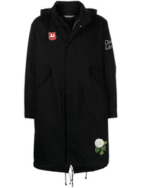 floral-print hooded jacket Founded by Jun Takahashi, UNDERCOVER is a Japanese brand known for its punk and streetwear-inspired style. Following the brand's dark tones, this hooded jacket arrives in a black hue highlighted by a colourful floral print on the back. Imported Composition Nylon 100% SIZE & FIT Model measurements Height 6 ft 2 in(1.88 m) Bust/Chest 38.18 in(97 cm) Hips 37 in(94 cm) Waist 29.92 in(76 cm) FittingInformation This piece fits true to size. We recommend you get your regular size Cut for a loose fit Made with a heavyweight non-stretch fabric