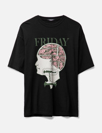 - Undercover - Friday Oversized T-shirt - Oversized silhouette - Half sleeve - Ribbed crewneck - 'Friday' logo graphics printed to the front - Woven logo tab above hem - Straight hem - Color: Black - Material: 100% Cotton - See more SS T-Shirts, T-Shirts and Clothing SIZING - Model wears size 3 - Model measures: Height 189cm, Chest 32”/81cm, Waist 27”/69cm, Hip 35.5”/90cm
