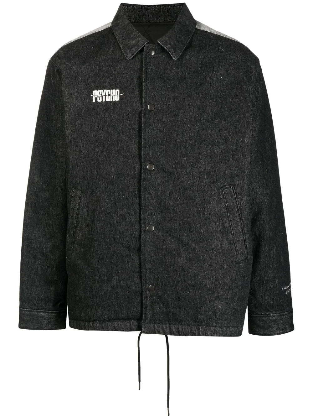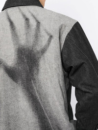 x Psycho graphic-print denim shirt jacket Renowned for their punk approach to streetwear, Japanese brand Undercover dedicated their AW22 Menswear collection to Alfred Hitchcock's 1960s film 'Psycho' in line with the brand's darkened aesthetic. From the offering, this denim jacket reveals a black and white graphic print from the film at the rear of its construction. Imported Composition Cotton 100% Filling: Polyester 100% SIZE & FIT Model measurements Height 6 ft 2 in(1.87 m) Bust/Chest 34.25 in(87 cm) Hips 36.22 in(92 cm) Waist 29.52 in(75 cm) Measurement SLEEVE LENGTH 25.19 in(64 cm) Shoulder Width 6.69 in(17 cm) LENGTH 28.74 in(73 cm) FittingInformation This piece fits true to size. We recommend you get your regular size Cut for a loose fit Made with a mid-weight fabric Washing instructions Dry Clean Only