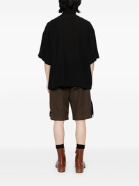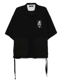 PROFESSIONALLY CRAFTED WITH A SLEEK BLACK GRAPHIC PRINT, THIS SHIRT BOASTS A FRONT BUTTON FASTENING FOR EASY WEAR AND A DROP SHOULDER FOR A RELAXED FIT. THE DRAWSTRING HEM ADDS A TOUCH OF VERSATILITY, MAKING IT A MUST-HAVE FOR ANY FASHION-FORWARD INDIVIDUAL.