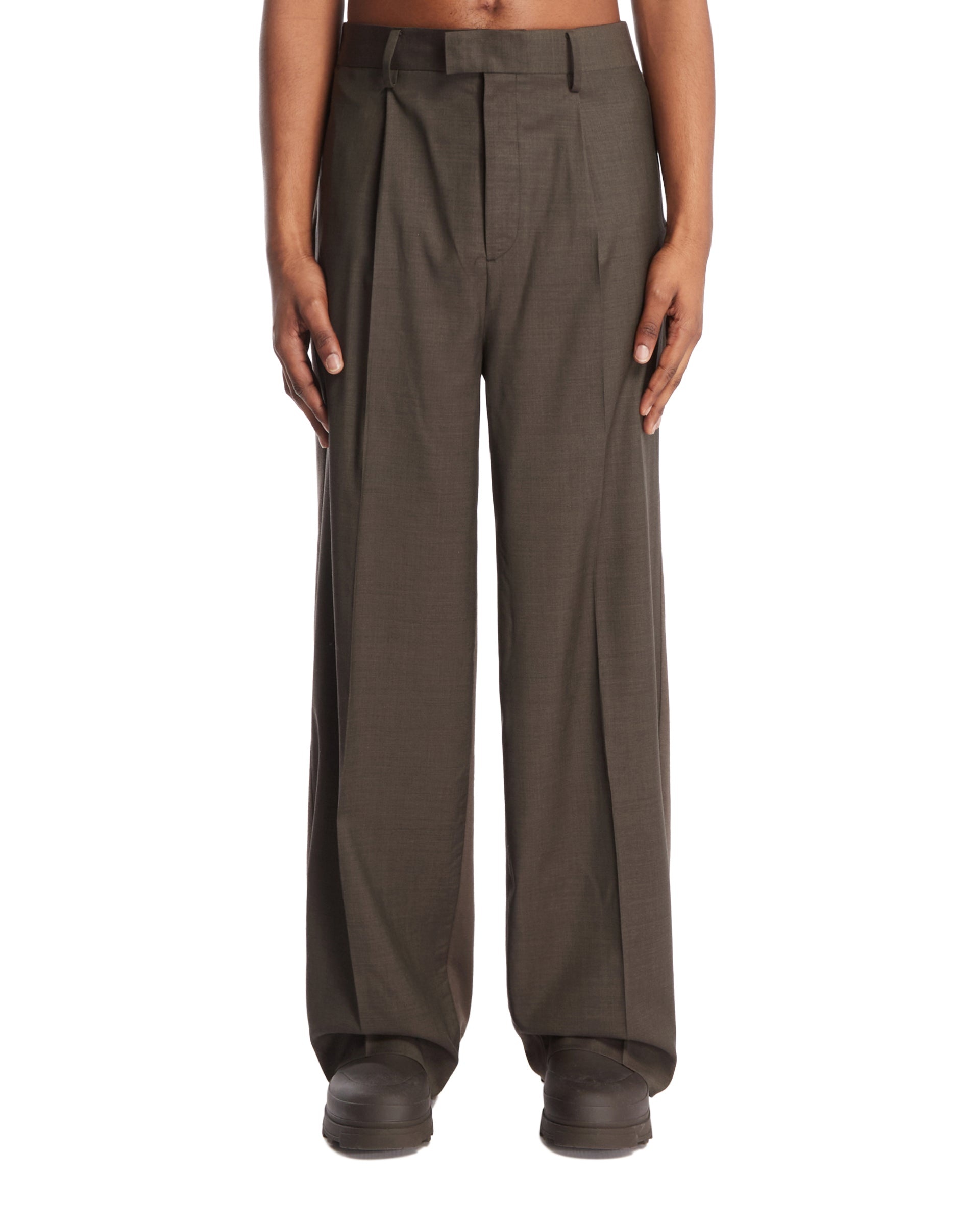 Undercover Gray Loose Fit Pants. Gray wool, cotton lining, central pleat design. Waist closure with hook and eye, zipper fly, wide leg, one back pocket. Loose fit. Giovanni is 188 cm and is wearing size IV. DETAILS Model: UC1E4508GRAYKHAKI Composition: 100% Wool; Lining: 100% Cotton Made in: JAPAN Season: SS25