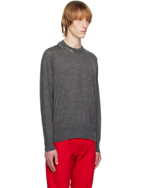Knit wool sweater. · Rib knit crewneck, hem, and cuffs · Zip accents at neck · Logo-engraved silver-tone hardware Supplier color: T. charcoal