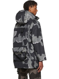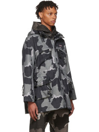 Nylon canvas coat. Graphic pattern throughout. · Drawstring at hood · Press-stud placket · Concealed two-way zip closure · Logo patch at front · Zip pockets · Grosgrain locker loop at back yoke Part of the Undercover x Eastpak collaboration. Supplier color: Black base Body: 100% nylon. Lining: 100% polyester. Made in Japan 221414M176016