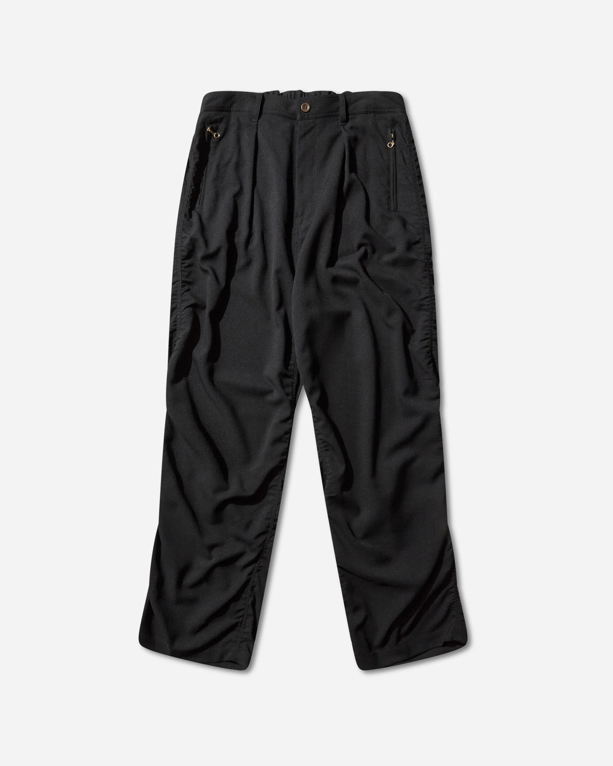 UNDERCOVER Polyester Trousers Black Continuing the concept introduced in Spring/Summer 2025, this collection adapts key design elements from UNDERCOVER’s main men's line into pieces made for everyday wear. Positioned between formal and casual, the collection strikes a refined balance—blending versatility with a distinct edge. Subtle references to Seditionaries run throughout, adding a layer of rebellious energy to otherwise classic silhouettes. - 100% Polyester - Regular Fit - Straight Leg - Partially Elasticated Waistband - Button Closure - Zip-Fly - Two Side Zip Pockets - Pleats at Front - Two Back Pockets - Made in Japan - Style Code: UP2E4501 BLACK