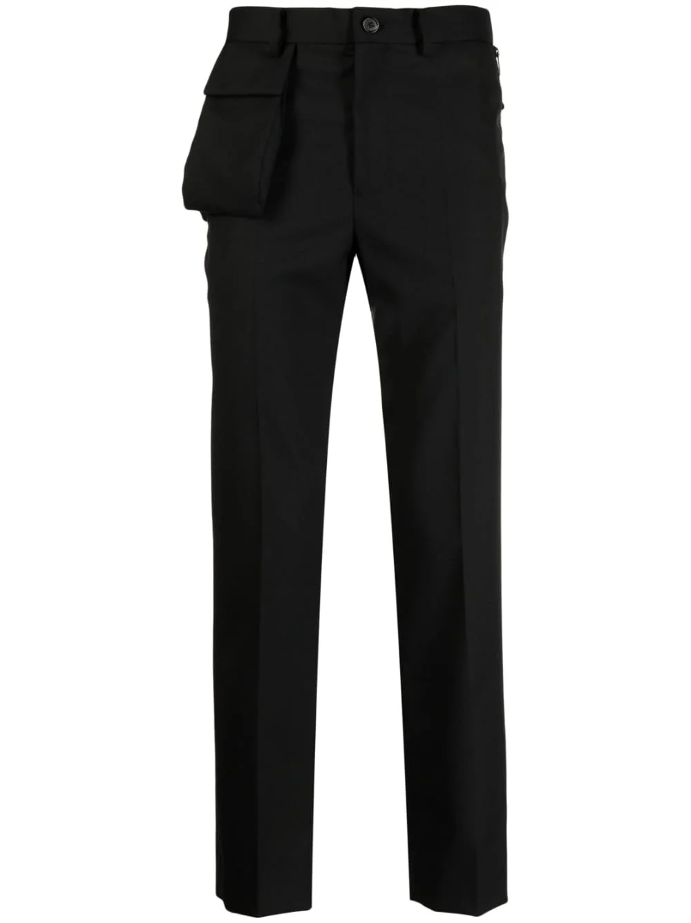multi-pocket slim-cut trousers Highlights - Black - Cotton blend - Slim cut - Pressed crease - Belt loops - Front button fastening - Two side inset pockets - Two rear welt pockets - Side pouch pockets Imported Composition Cotton 98%, Polyurethane 2% SIZE & FIT Model measurements Height 6 ft 2 in(1.87 m) Bust/Chest 34.25 in(87 cm) Hips 36.22 in(92 cm) Waist 29.52 in(75 cm) FittingInformation Designed for a slim tapered leg, offering a close fit that sits just away from the leg with a closer fit towards the ankle Made from a midweight non-stretch fabric, this piece offers minimal elasticity when worn This piece fits true to size – take your usual size Washing instructions Dry Clean Only