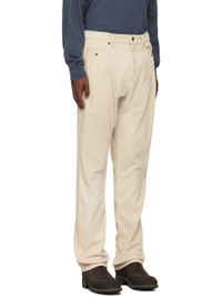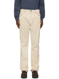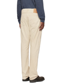 Cotton corduroy trousers. · Belt loops · Five-pocket styling · Zip fly · Pintuck at front and back pockets · Logo patch at back waistband · Logo flag at back pocket · Antiqued brass-tone hardware Supplier color: Ivory 100% cotton. Made in Japan 242414M186002