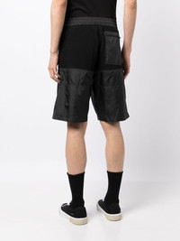 panelled-design elasticated-waistband track shorts Highlights - Black - Cotton blend - Panelled design - Elasticated waistband - Two side slit pockets - Front welt pocket - Rear zip fastening - Knee-length - Straight hem Imported Composition Polyester 100% Body: Cotton 100% SIZE & FIT Model measurements Height 6 ft 2 in(1.87 m) Bust/Chest 34.25 in(87 cm) Hips 36.22 in(92 cm) Waist 29.52 in(75 cm) FittingInformation Designed with a wide leg, offering a loose and roomy fit The elasticated waist allows for a comfortable fit Made from a midweight non-stretch fabric This piece fits true to size – take your usual size Washing instructions Hand Wash