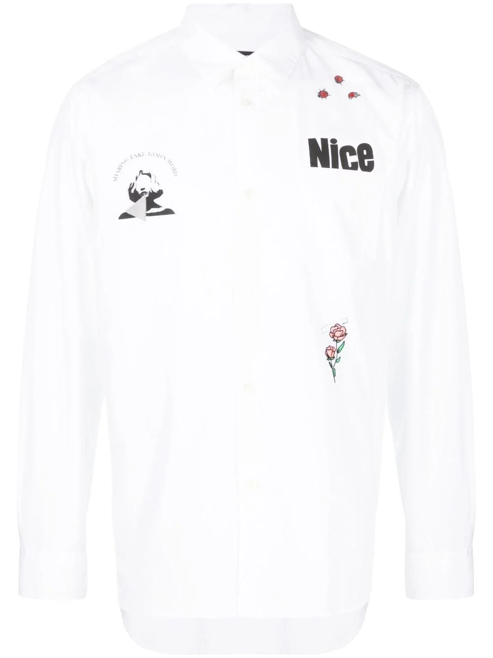patch-detail cotton shirt Highlights - Off-white - Cotton - Patch detail - Slogan print to the front - Classic collar - Long sleeves - Buttoned cuffs - Front button fastening - Chest patch pocket - Curved hem Imported Composition Cotton 100% SIZE & FIT Model measurements Height 6 ft 2 in(1.87 m) Bust/Chest 34.25 in(87 cm) Hips 36.22 in(92 cm) Waist 29.52 in(75 cm) FittingInformation Designed to be unstructured, offering a loose fit throughout Made from a lightweight non-stretch fabric This piece fits true to size – take your usual size Washing instructions Hand Wash