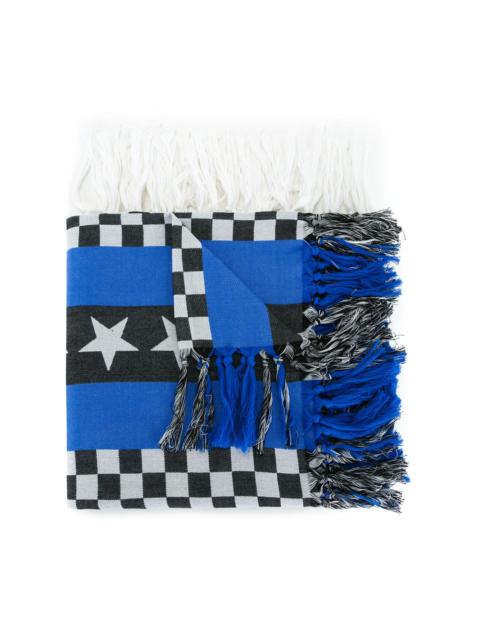 printed frayed scarf Peppermint and red cotton printed frayed scarf from Undercover. This item is unisex. Imported Composition Cotton 100% SIZE & FIT Model measurements Height 6 ft 2 in(1.88 m) Bust/Chest 36.22 in(92 cm) Hips 35.43 in(90 cm) Waist 27.95 in(71 cm) Measurement WIDTH 82.67 in(210 cm) LENGTH 118.11 in(300 cm)