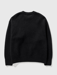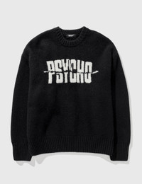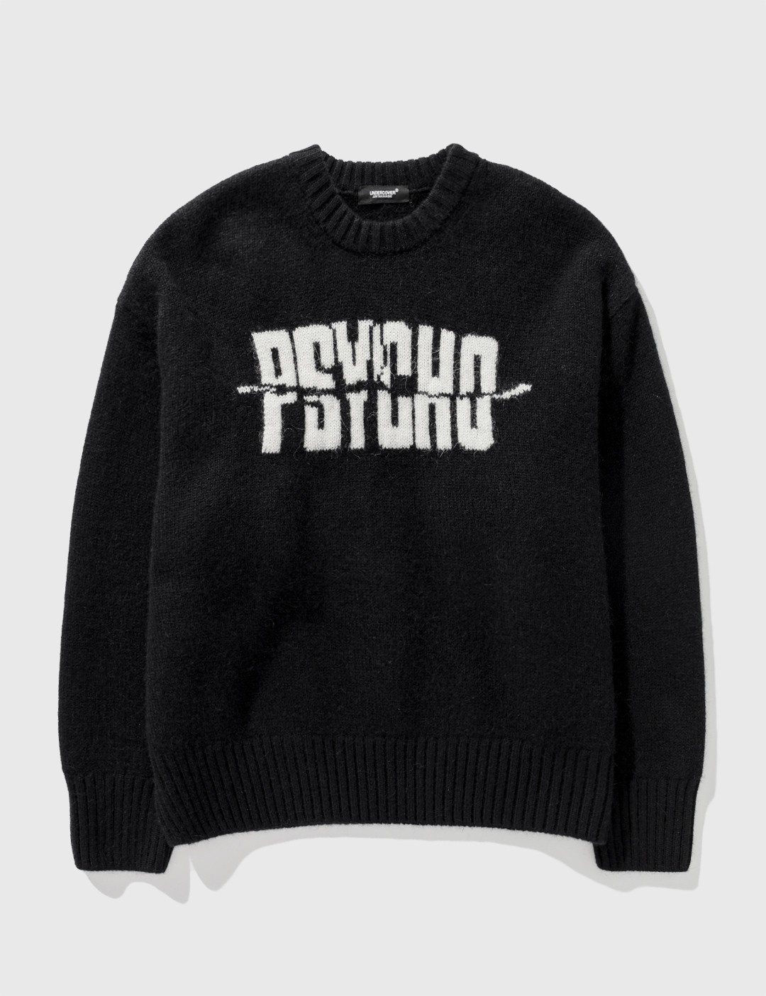 - Undercover - Psycho Knit Sweater - Intarsia knit - Long sleeve - Crewneck - Knitted text at front - Ribbed crewneck, cuffs and hem - Color: Black - Material: 50% Alpaca, 50% Wool - See more - Knitwear - and - Clothing SIZING - Model wears size 3 - Model measures: Height 190cm, Chest 34”/84cm, Waist 28”/70cm, Hip 35”/90cm