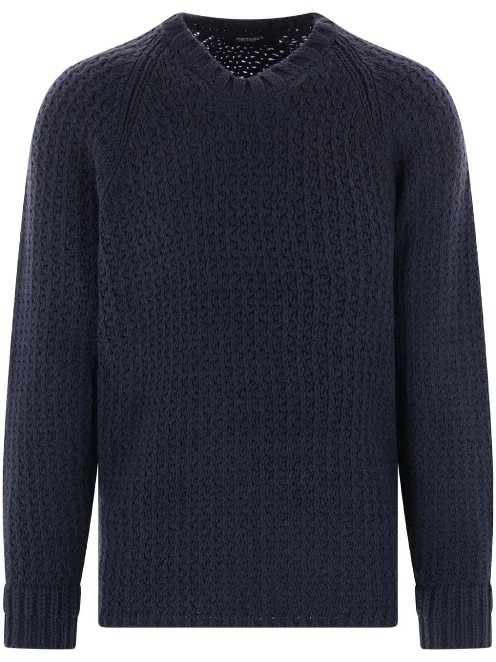 round-neck long-sleeved sweater Highlights - Navy blue - Wool blend - Knitted construction - Round neck - Long raglan sleeves - Ribbed cuffs - Straight hem Imported Composition Wool 70%, Nylon 30%
