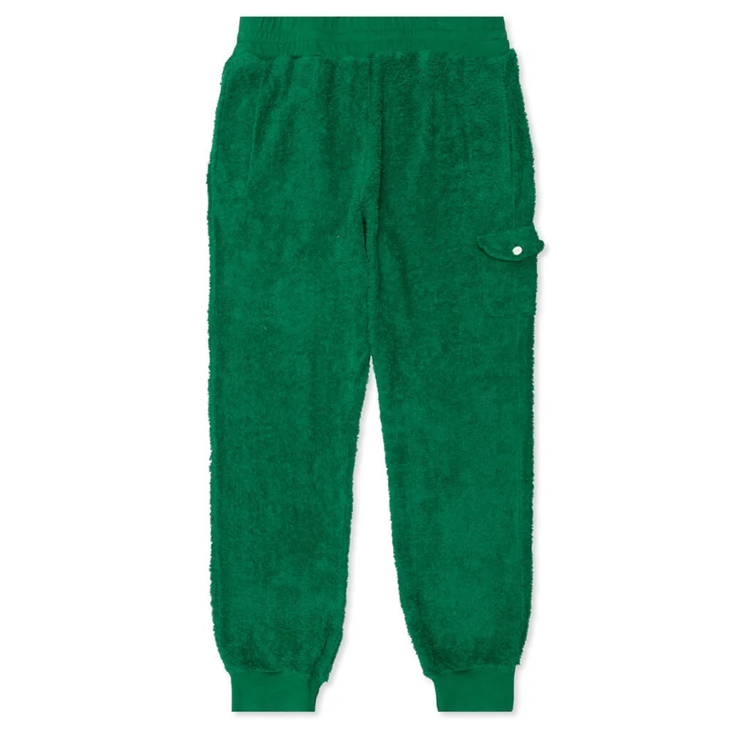 UNDERCOVER introduces the Shag Pants, a rendered version of the traditional jogger adding texture throughout the piece. Pockets decorate the rear side with a button closure for security. Inner adjustable drawstrings provide a tailored element while ribbed cuffs finish the design. FINAL SALE ITEM. NOT ELIGIBLE FOR RETURNS/CANCELLATIONS. - 100% cotton - Pocket design - Inner adjustable drawstrings - Ribbed trimmings - Tapered design - Style No: UC1A4512-1-GRN