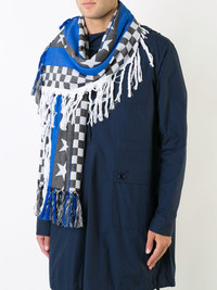 tasseled pattern scarf Black, white and cobalt cotton tasseled pattern scarf from Undercover. Imported Composition Cotton 100% SIZE & FIT Model measurements Height 6 ft 2 in(1.88 m) Bust/Chest 36.22 in(92 cm) Hips 35.43 in(90 cm) Waist 27.95 in(71 cm) Measurement WIDTH 82.67 in(210 cm) LENGTH 118.11 in(300 cm)