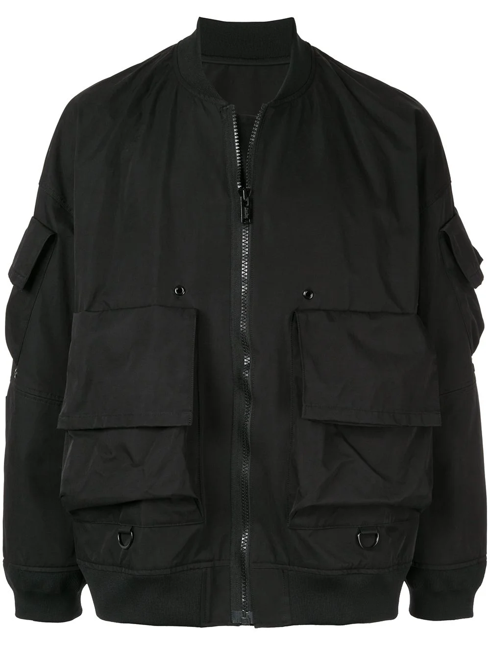 back print bomber jacket Black cotton blend back print bomber jacket from Undercover featuring a round neck, a front zip pocket, long sleeves, front pockets and a straight hem. Imported Composition Cotton 53%, Nylon 47% SIZE & FIT Model measurements Height 6 ft 2 in(1.88 m) Bust/Chest 38.18 in(97 cm) Hips 35.43 in(90 cm) Waist 29.92 in(76 cm) Washing instructions Do Not Wash/Do Not Dry Clean