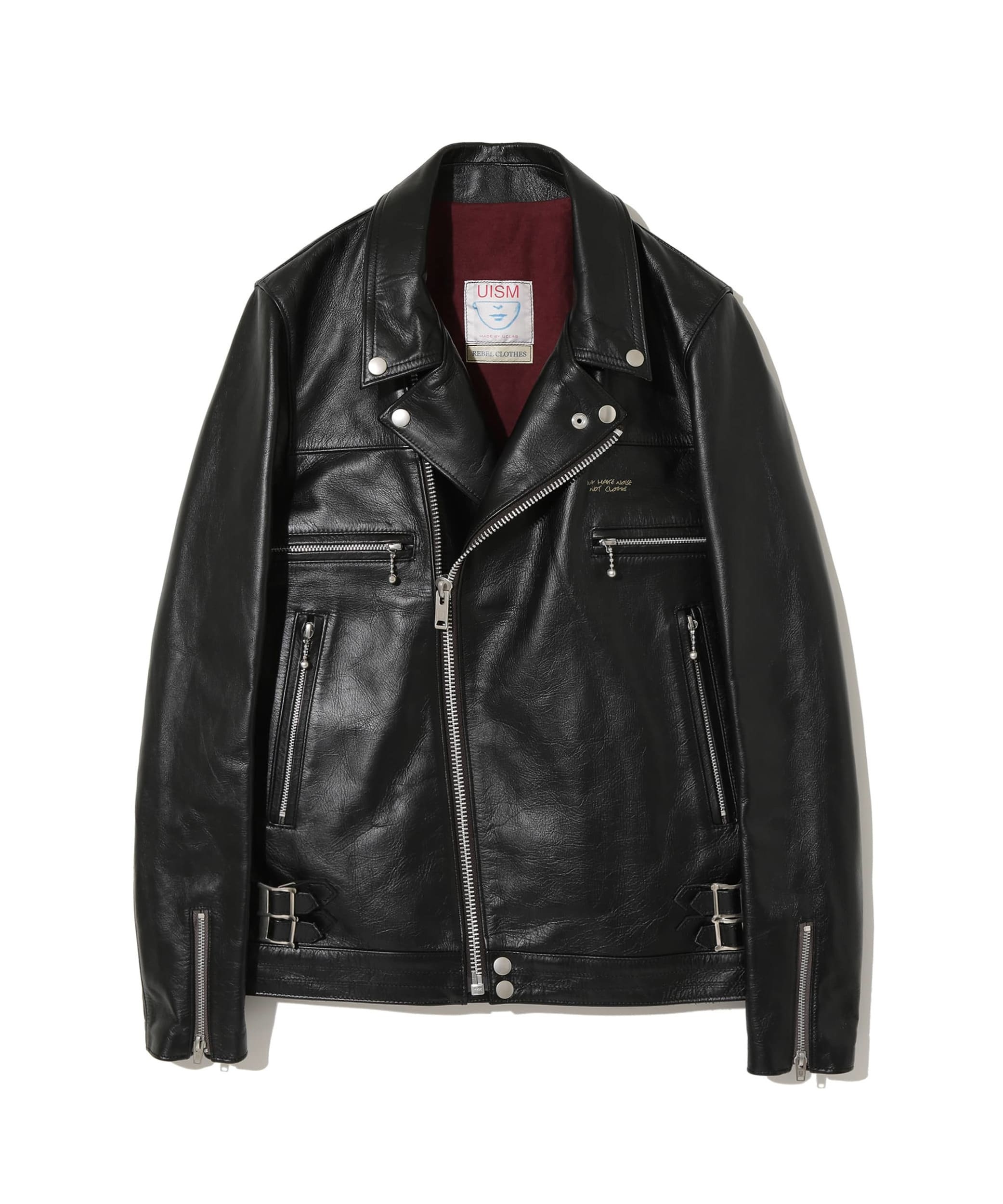 -Cowhide leather rider's jacket -logo print on chest -ball chain zipper MATERIAL COWHIDE LINING1: 100% COTTON LINING2: 100% CUPRO