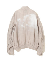 -Linen all-over stand collar jacket -Front welt pocket -Zipper on sleeve -Elastic hem -Cotton/silk lining Regarding the handling of linen materials * As the material of this product is a natural material, there may be uneven dyeing. * Thick linear edges and neps (clumps of fibers) on the surface are characteristics of the material. Please note that this is not a weaving scratch. MATERIAL 100% LINEN PARTLY: 100% WOOL LINING: 70% COTTON, 30% SILK