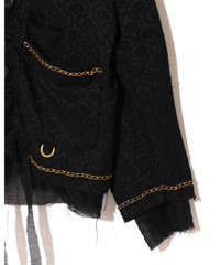 -Damask jacquard blouson -Wool chiffon layered design -Chain x ribbon on front and back -Front flap pocket and patch pocket -Perforated design on sleeve MATERIAL 59% ACRYLIC, 25% POLYESTER, 13% NYLON, 3% POLYURETHAN PARTLY: 100% WOOL LINING: 70& RAYON, 30% NYLON