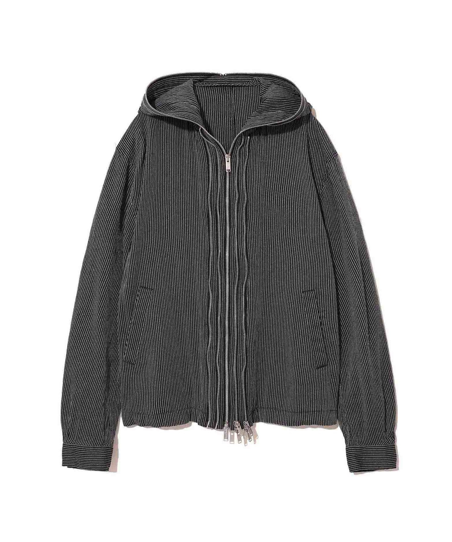 -Silk/japanese paper hood blouson -Triple zipper -Front welt pocket -Side buckle MATERIAL 57% SILK, 43% JAPANESE PAPER