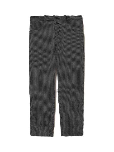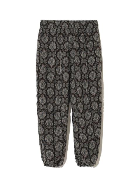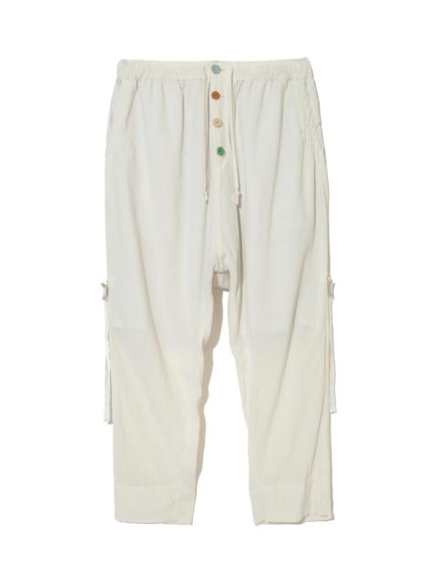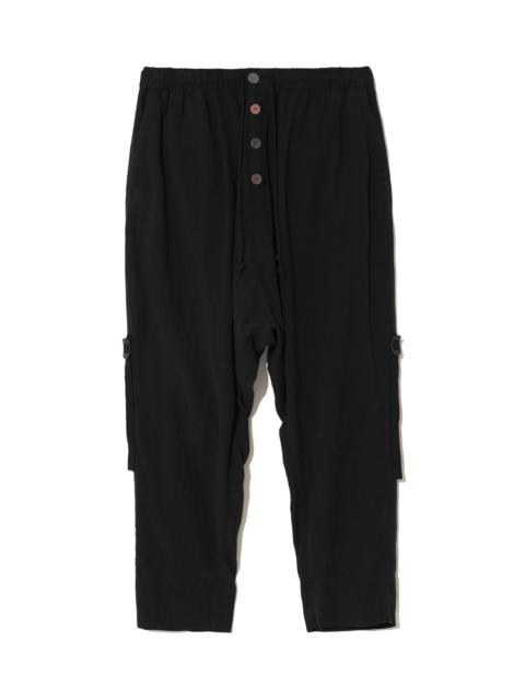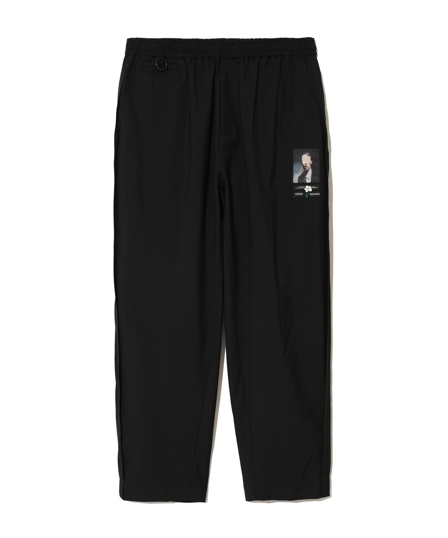 -Wool/polyester easy pants -Beaded embroidery and jacquard patch on the front -Elastic waist -Welt pocket and O-ring on the front -Back welt pocket MATERIAL 40% WOOL, 35% POLYESTER, 25% NYLON