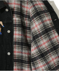 -Cotton denim jacket -Nylon wool lining -Bead embroidery before and after -Frap pocket, patch pocket, seam pocket on the front MATERIAL 100% WOOL LINING: 73% WOOL, 27% NYLON