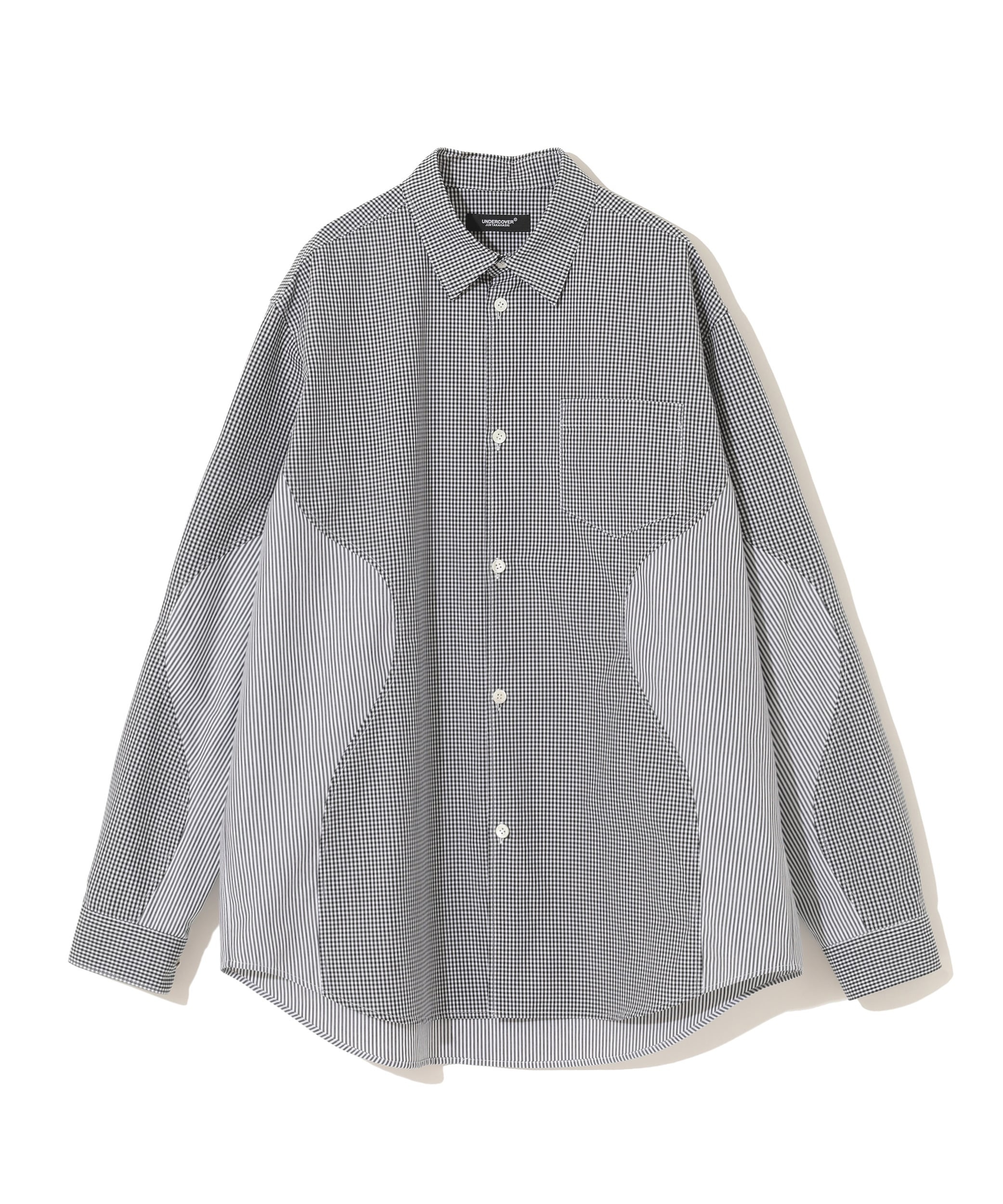 -Check x stripe switching cotton shirt -Patch pocket on the front MATERIAL 100% COTTON