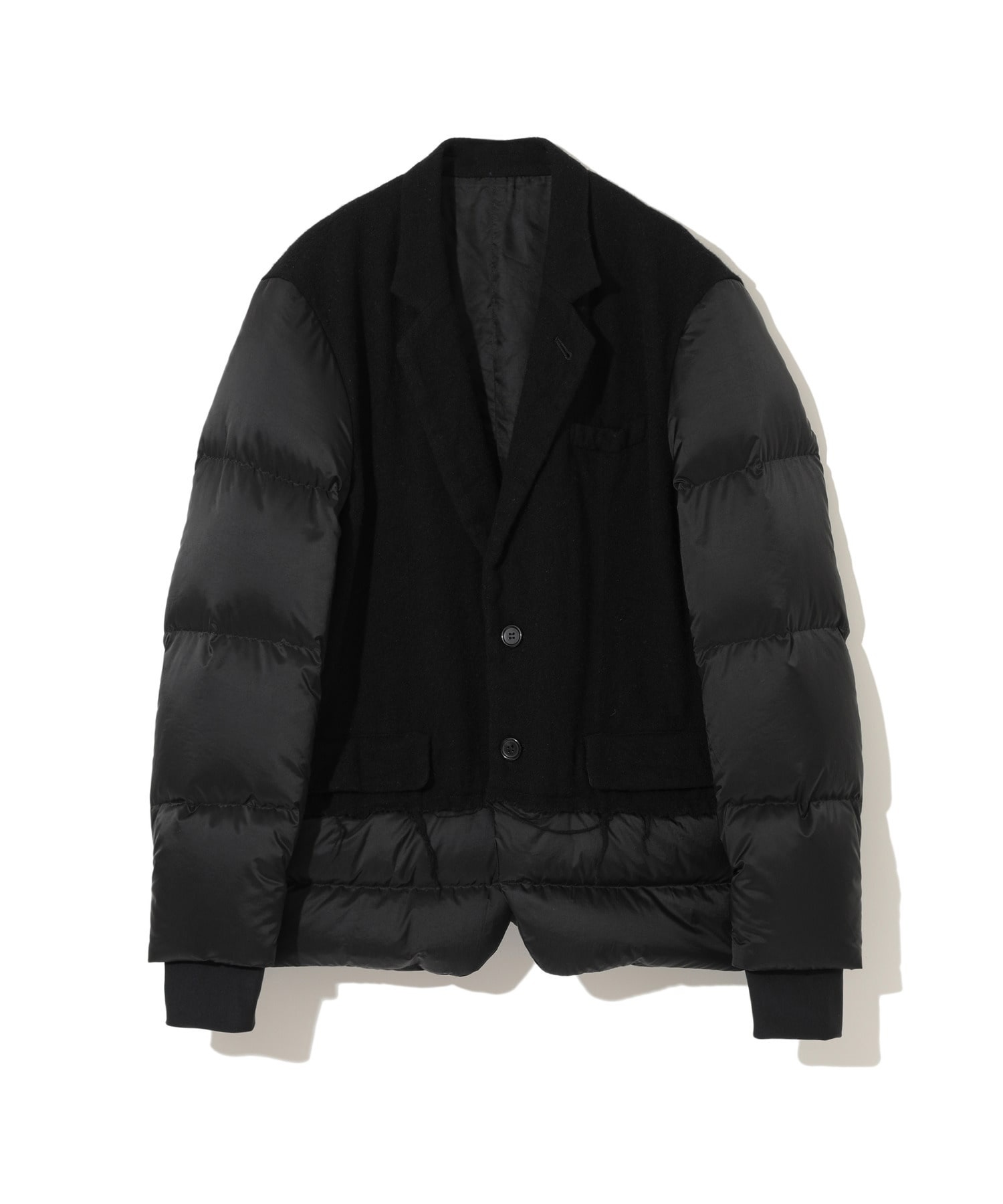-Down sleeve wool jacket -Cupro lining -Front flap pocket and welt pocket MATERIAL SURFACE1: 100% WOOL SURFACE2: 100% NYLON FILLING: 90% DOWN, 10% FEATHER PARTLY: 100% POLYESTER LINING1: 100% CUPRO LINING2: 100% NYLON RIB: 100% POLYESTER