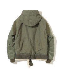 -MA-1 sleeve army blouson -Zipper pocket on the front -3D pocket on sleeve -Removable bead parts on hem MATERIAL SURFACE1: 100% COTTON SURFACE2: 100% NYLON FILLING: 100% POLYESTER LINING1: 100% RAYON LINING2: 100% POLYESTER RIB2: 70% ACRYLIC, 30% WOOL