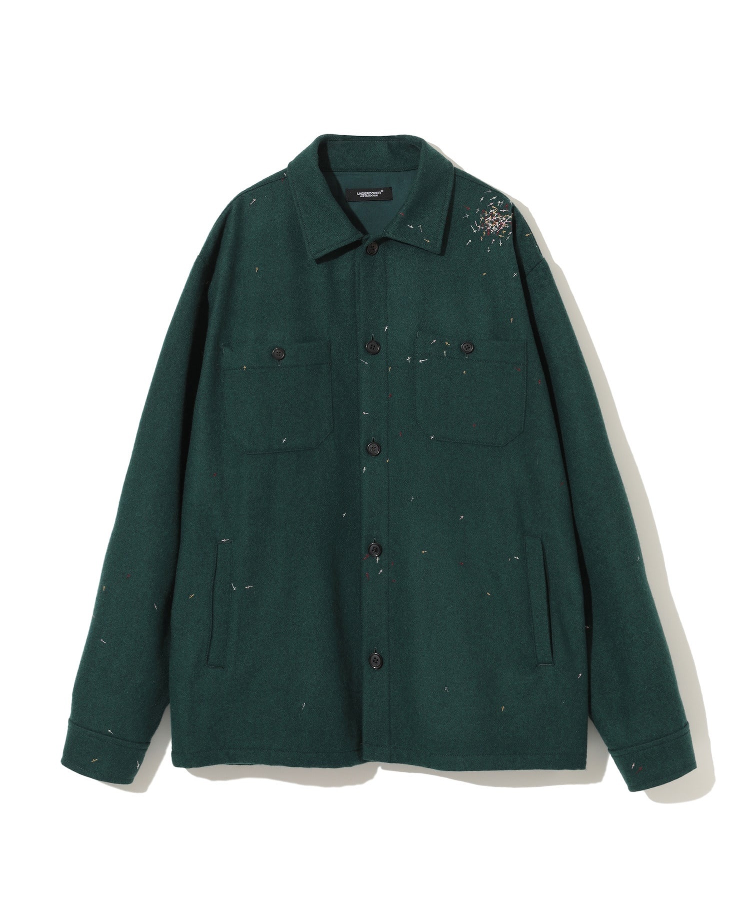-Wool blend work shirt -Cross embroidery all over -Front patch pocket and welt pocket MATERIAL 67% WOOL, 22% POLYESTER, 6% NYLON, 5% ACRYLIC