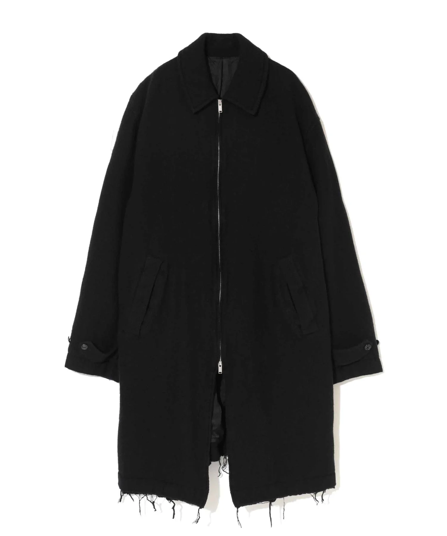 - Felted wool trench coat - Front welt pockets - Cupro lining - Inner pocket - ??Raw hem MATERIAL GRAY BEIGE,DARK BROWN, CHARCOAL, BLACK:100% WOOL NAVY:90% WOOL, 10% NYLON LINING: 100% CUPRO