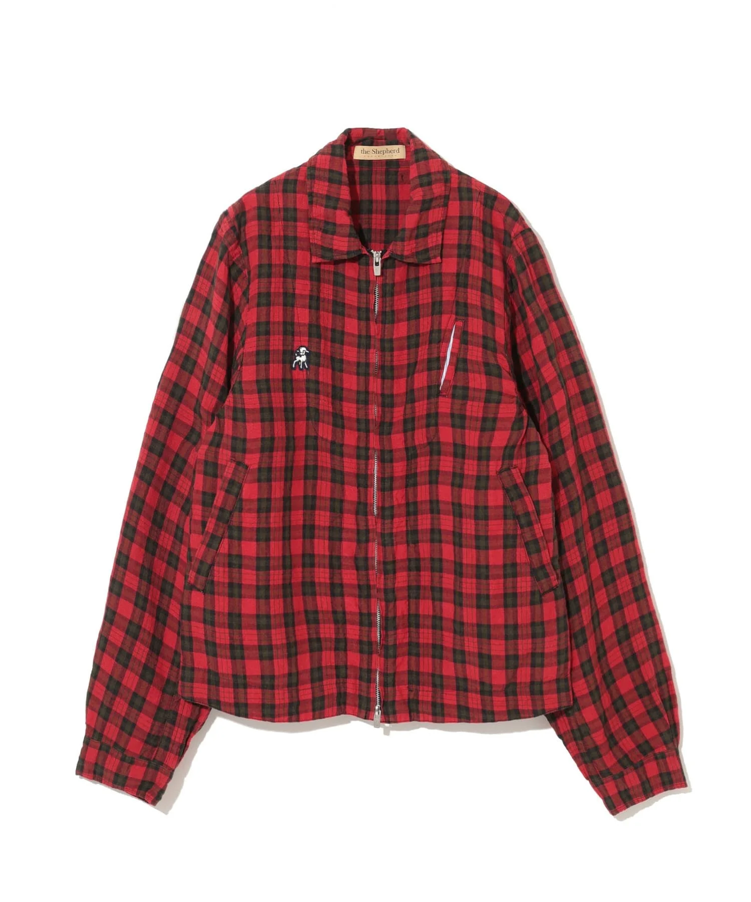 -Linen puckering blouson -Embroidered patch on the front -Front welt pocket -Pocket bag cloth is cotton shirt fabric MATERIAL 100% LINEN LINING:100% COTTON