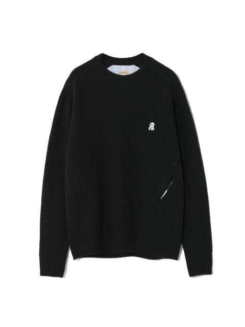 -Wool knit pullover -The elbow is a rib knitting -Emblem on the chest -Slit pocket on the front MATERIAL 100% WOOL PARTLY: 100% COTTON