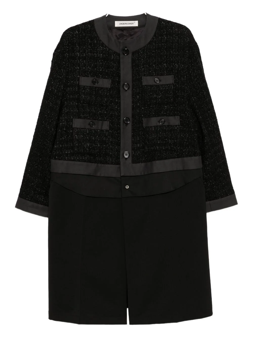 wool-blend tweed coat Highlights - Black - Front button fastening - Long sleeves Imported Composition Outer: Acrylic 43%, Wool 26%, Polyester 26%, Cupro 4%, Nylon 1% Cotton 100% Lining: Cupro 100% Washing instructions Dry Clean Only