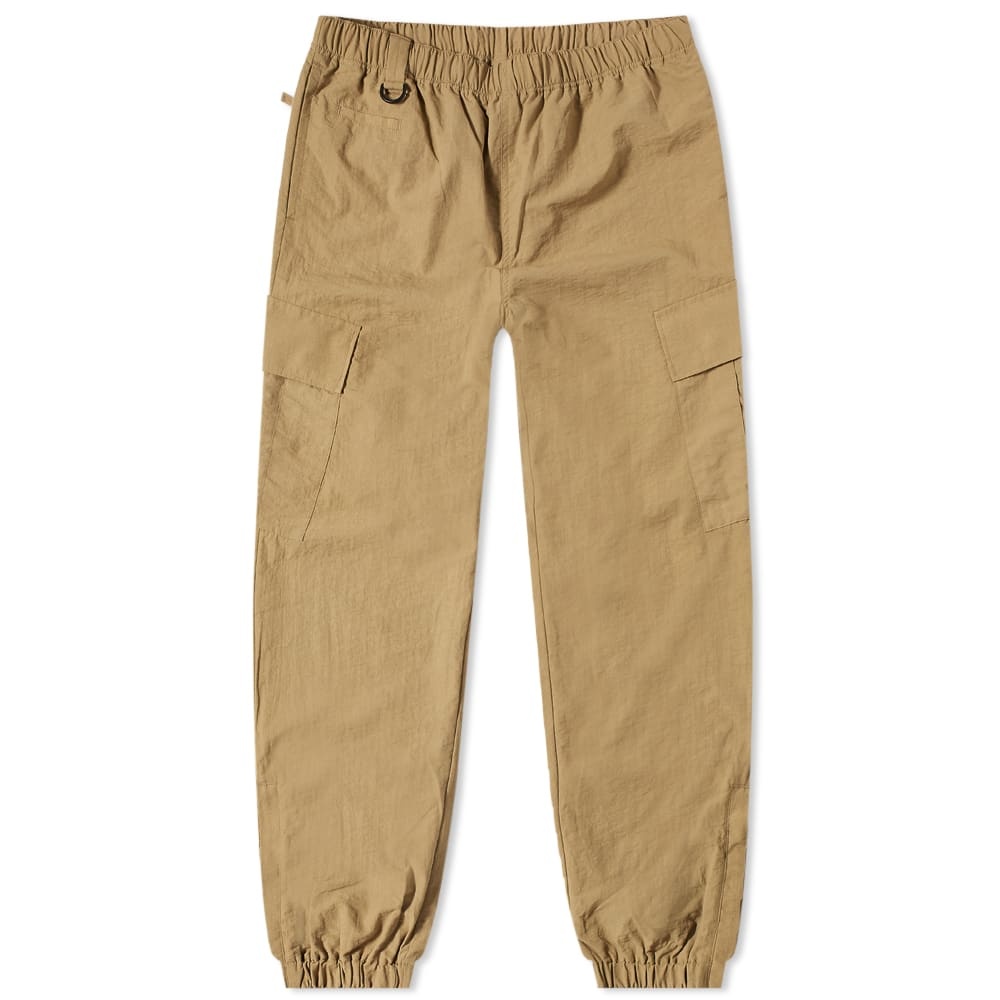 Put a utilitarian stamp on your everyday looks with these beige cargo pants from Undercover. Made from durable nylon, they’re cut to a classic fit and elasticated at the waist and cuffs for comfort and fitted with two cargo pockets. You’ll also discover a utility ring at the waistband to drive home the industrial look. - 100% Nylon - Elasticated Waist - Multiple Pockets - Elasticated Cuffs - Utility Ring Detail - Made in Japan