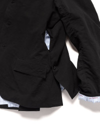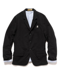 From 'The Shephard', a sophisticated, tailoring focused diffusion label from Undercover. Exceptional blazer style jacket constructed from a versatile cotton linen blend featuring subtle, yet standout details such as ruched seams, pinstriped lining, custom buttons, chest patch, and embroidered branding throughout the smooth cotton lining. Relaxed, yet considered fit and proportion. Perfect for casual daily wear through seasons. Made in Japan. DETAILS - US2C4191-1 - 75% cotton, 25% linen - Regular fit - Welt flap hand pockets - 3 button finish - Contrast striped lining - Inner storage pockets - Embroidered branding - Custom branded buttons - Made in Japan