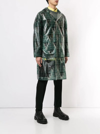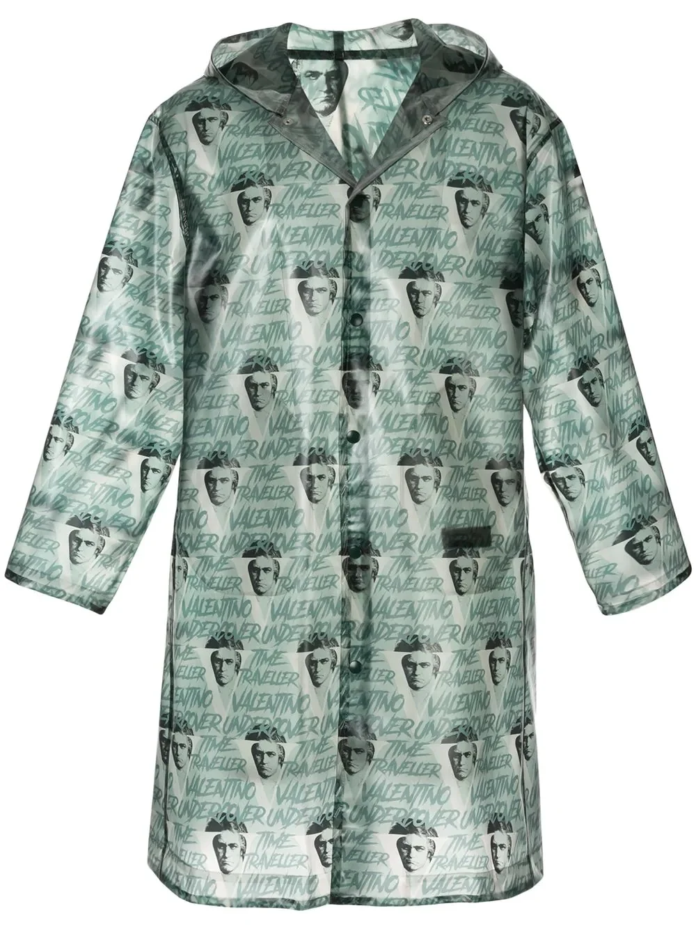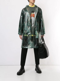 Clockwork Orange all-over print raincoat Green tinted polyurethane Clockwork Orange all-over print raincoat from Undercover featuring a hood, a snap button closure, an all-over print, long sleeves and a sheer construction. Imported Composition Polyurethane 100% SIZE & FIT Model measurements Height 6 ft 0 in(1.84 m) Bust/Chest 35.43 in(90 cm) Hips 35.82 in(91 cm) Waist 28.74 in(73 cm) FittingInformation This piece fits true to size. We recommend you get your regular size Cut for a loose fit Made with a mid-weight fabric Washing instructions Specialist Cleaning