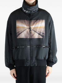 zipped graphic-print jacket Highlights - Black - Graphic print - Zip fastening - High neck - Zipped pockets - Ribbed hem Imported Composition Cotton 100% Washing instructions Read Manufacturer Guidelines