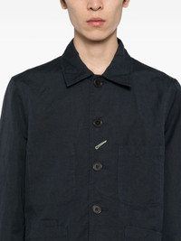 Bakers linen jacket Highlights - Navy blue - Front button fastening - Long sleeves - Chest patch pocket - Two front patch pockets Imported Composition Linen/Flax 62%, Cotton 38% SIZE & FIT Model measurements Height 6 ft 2 in(1.87 m) Bust/Chest 33.07 in(84 cm) Hips 35.43 in(90 cm) Waist 26.77 in(68 cm) FittingInformation Designed for a regular fit, allowing for a comfortably loose fit throughout the body Made from a midweight non-stretch fabric