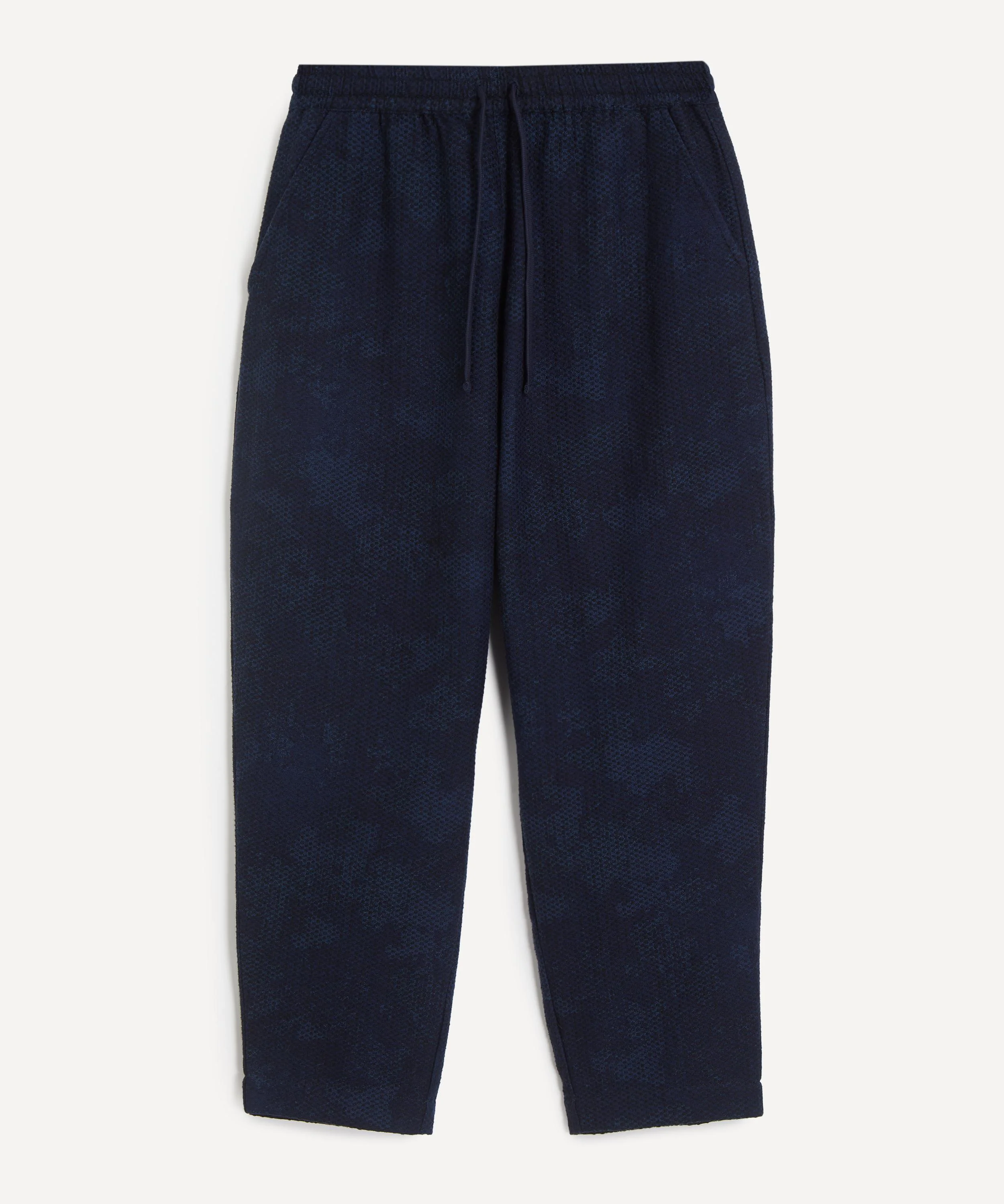 DETAILS Cotton-wool trousers Jacquard camo pattern Loose fit Tapered leg Drawstring waist No fly design Two angled side pockets Rear buttoned flap pockets SIZE & FIT Model is 188cm/6'2"; Chest: 91cm; Waist: 79cm and wears a size 32 COMPOSITION & CARE 68% Cotton; 32% Wool Dry clean only