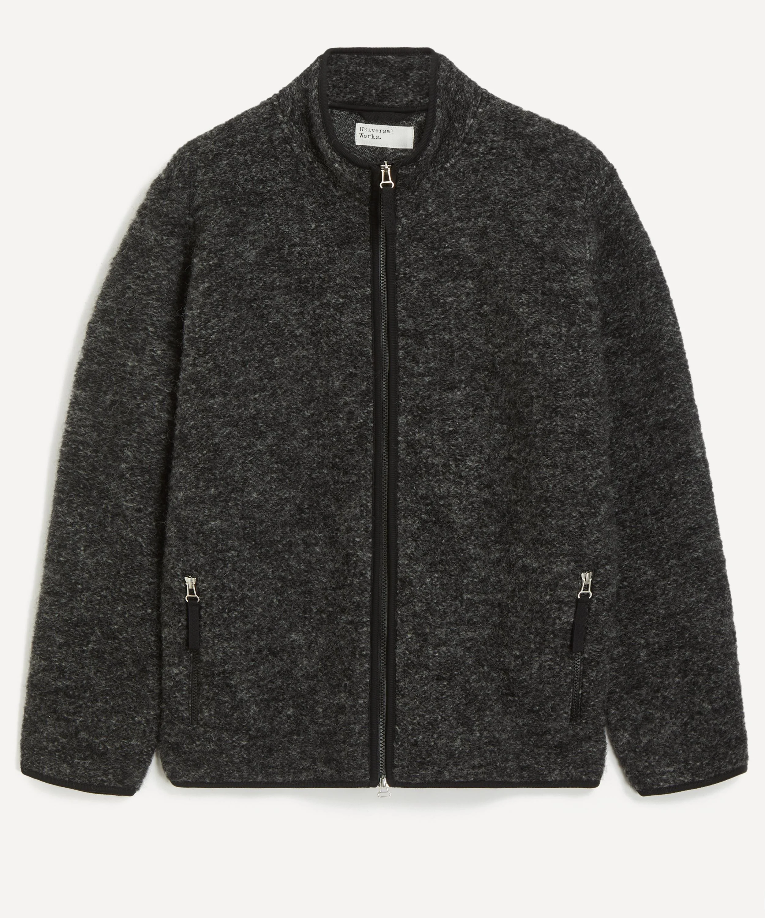 DETAILS Fleece cardigan Button fastenings V-neck Dropped shoulders Oversized fit Front pockets Inside pocket SIZE & FIT Model is 190cm/6'3"; Chest: 86cm; Waist: 69cm COMPOSITION & CARE 65% Wool; 35% Recycled Polyester Delicate machine wash