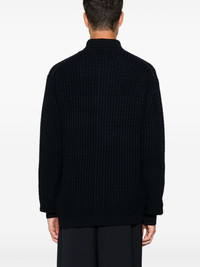 classic-collar cardigan Highlights - Navy blue - Merino wool blend - Waffle knit - Ribbed panelling - Classic collar - Front button placket - Drop shoulder - Long sleeves - Chest patch pocket - Ribbed cuffs and hem Imported Composition Merino 51%, Acrylic 49% SIZE & FIT Model measurements Height 6 ft 2 in(1.87 m) Bust/Chest 36.22 in(92 cm) Hips 35.43 in(90 cm) Waist 29.13 in(74 cm) FittingInformation Designed for a relaxed fit, this piece allows for comfort and movement when worn The ribbed hem offers a close, comfortable fit Made with a midweight knit, this piece offers some stretch