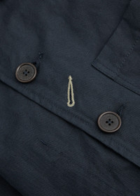 Info & Care Universal Works linen-blend jacket Four patch pockets at front, faux button hole with contrast stitching, internal button-fastening pocket, curved hem Button fastenings through front 62% linen, 38% cotton Machine wash Size & Fit Length shoulder to hem: 27.5 inches/ 70cm Midweight Regular fit; Model is 6'3"/ 192cm, chest size 38 inches and wears a size medium