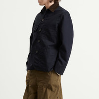 Independent, understated, and quietly confident — Universal Works is built on values that last. Classic British workwear is the name of the game, and this industrial shirt style Merchant jacket fits the bill. Tonal buttons and a contrasting cord collar nail a timeless look that you can wear on repeat. - 65% Cotton, 35% Recycled Polyester - Contrast Cord Collar - Button Closure - Chest Flap Pocket - Hip Patch Pockets - Style Code: 33118-NVY