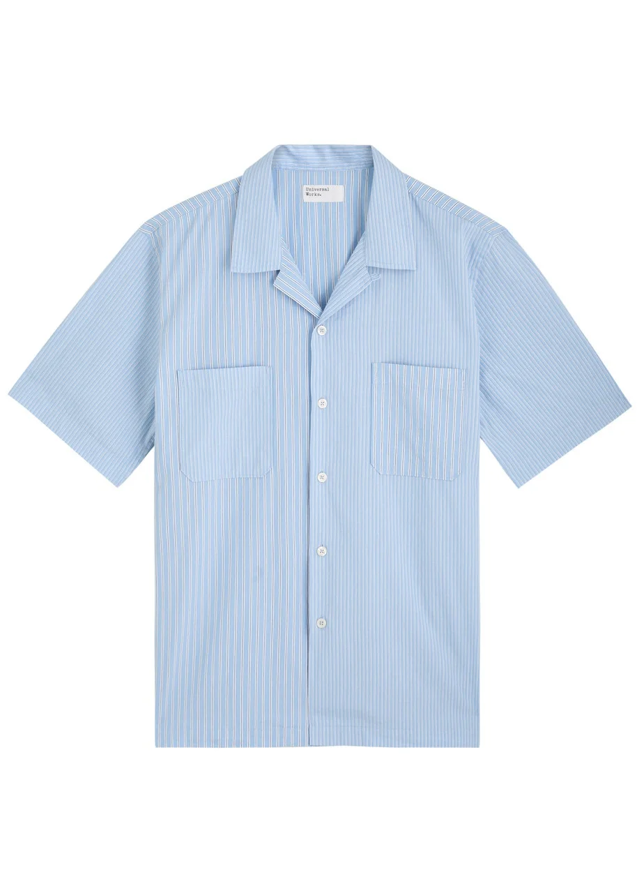 Info & Care Universal Works cotton shirt Striped, camp collar,;two patch pockets at chest Button fastening through front 100% cotton; Machine wash; Size & Fit Length shoulder to hem: 26 inches/ 66cm Midweight Relaxed fit Model is 6'0"/ 183cm, chest size 38 inches and wears a size medium;