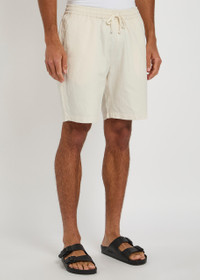 Info & Care Universal Works linen-blend shorts Drawstring at elasticated waist, side slip pockets, two back patch pockets Pull on 62% linen, 36% cotton Machine wash Size & Fit Length waist to hem: 20.5 inches/ 52cm Midweight Regular fit Model is 6'3"/ 192cm and wears a size;W32