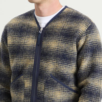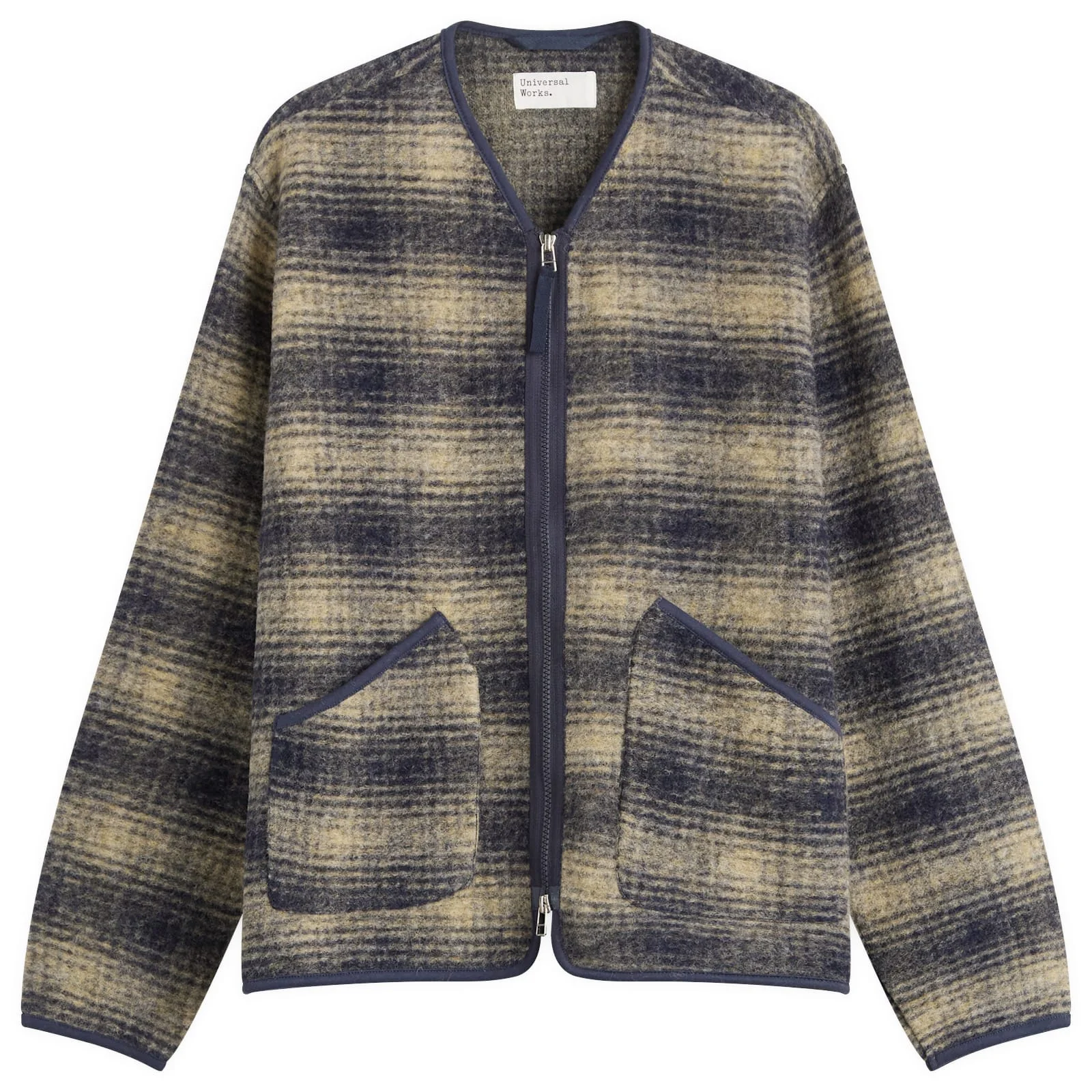 Universal Works delivers warmth and utility with the Uist fleece zip liner jacket. Inspired by military liners, it’s crafted from wool fleece with a two-way zip and clean finish. It’s a practical mid-layer that embodies the brand’s philosophy of real, honest clothing. - Composition - V-Neckline - 2-Way Zip Closure - 2 Slant Pockets - Check Pattern - Made in Portugal - Style Code: 33710-NVY