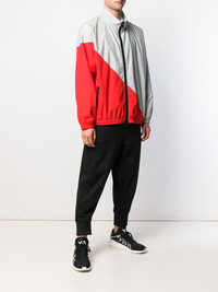 contrasting panels windbreaker Grey and red cotton contrasting panels windbreaker from Unravel featuring a high standing collar, a front zip fastening, side zipped pockets, long sleeves, elasticated cuffs, an elasticated hem and a printed logo to the rear. Made in Italy Composition Outer: Cotton 100%, Viscose 78%, Polyurethane 22% Lining: Polyamide 100% SIZE & FIT Model measurements Height 6 ft 2 in(1.87 m) Bust/Chest 37.79 in(96 cm) Hips 37.79 in(96 cm) Waist 30.31 in(77 cm) Washing instructions Machine Wash
