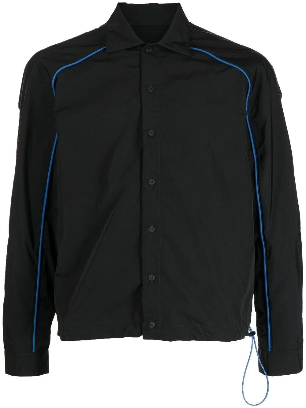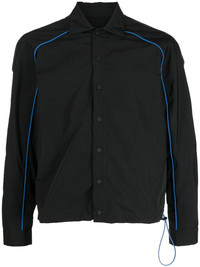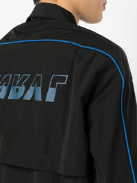 rear-logo print shirt jacket black/blue piped-trim detailing logo print to the rear classic collar front button fastening long sleeves drawstring hem Made in Italy Composition Polyester 100%, Polyamide 100% SIZE & FIT Model measurements Height 6 ft 2 in(1.87 m) Bust/Chest 34.25 in(87 cm) Hips 36.22 in(92 cm) Waist 29.52 in(75 cm) FittingInformation This piece fits true to size. We recommend you get your regular size Cut for a loose fit Made with a lightweight non-stretch fabric