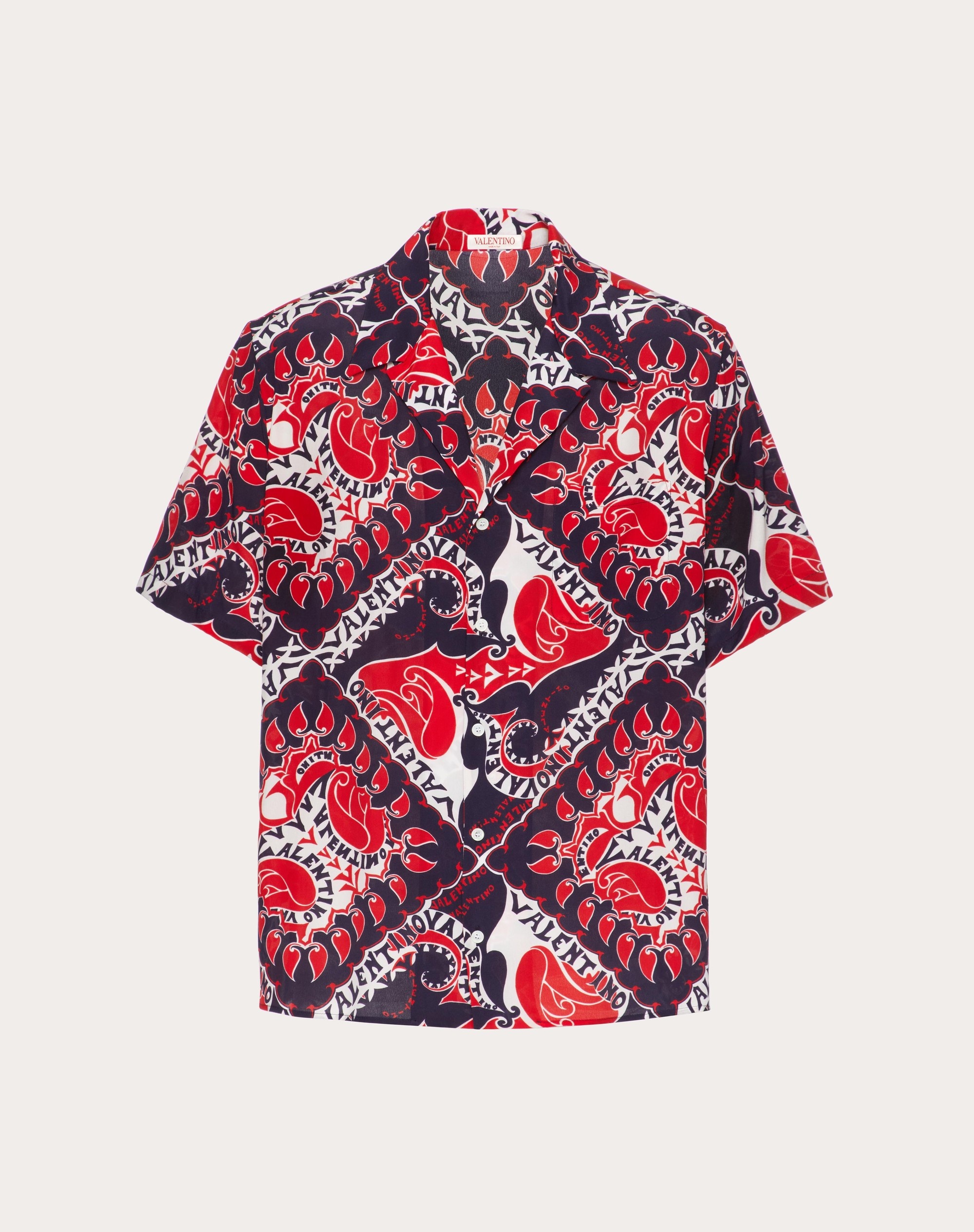 Short sleeve shirt in silk with all-over Archive Manifesto Bandana print - Boxy fit - All-over Archive Manifesto Bandana pattern - One breast pocket on left as worn - Button fastening - Composition: 100% Silk - Length: 76 cm / 29.9 in. from the back of the neck in Italian size 46 - The model is 187 cm / 6'1" tall and wears an Italian size 46 - Made in Italy Product Code VAAA908KW_7QC