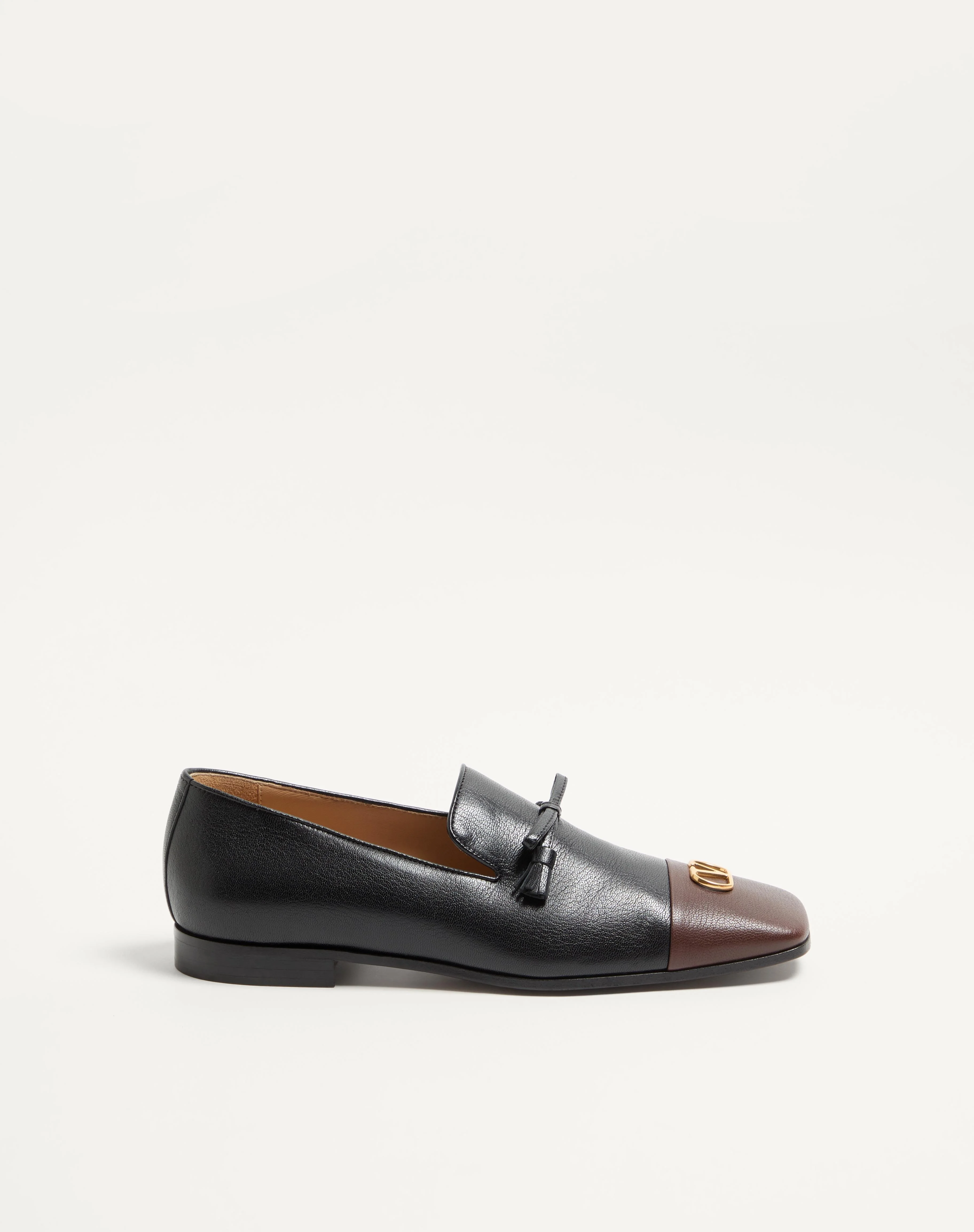 Valentino Garavani Babouche loafer in two-tone kidskin - VLogo Signature detail in antique brass effect finish - Bow detail with leather tassels - Leather sole - Heel height: 20 mm / 0.8 in. - Made in Italy Product code: 7Y0S0L86ZWD_BKZ