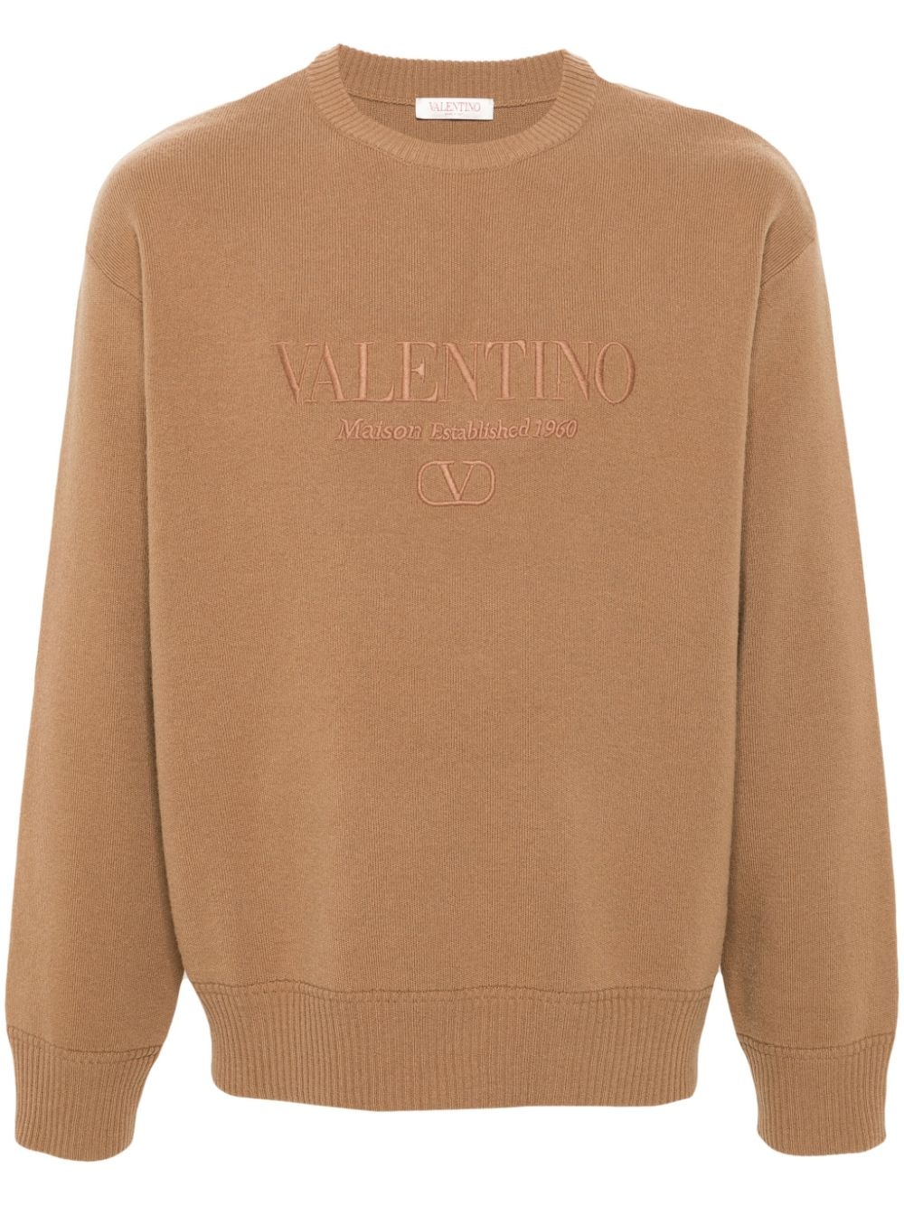 logo-embroidered sweater Highlights - Valentino ready to wear - Camel brown - Virgin wool - Knitted construction - Crew neck - Long sleeves - Ribbed trim - Embroidered logo to the front - Straight hem Made in Italy Composition Virgin Wool 100%, Wool 50%, Acrylic 50% SIZE & FIT Model measurements Height 6 ft 1 in(1.85 m) Bust/Chest 35.82 in(91 cm) Hips 37.4 in(95 cm) Waist 28.34 in(72 cm) FittingInformation Designed for a relaxed fit, this piece allows for comfort and movement when worn Made with a midweight knit, this piece offers some stretch This piece fits true to size – take your usual size